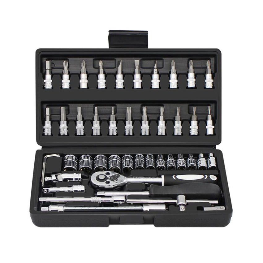 46pcs Multi-Functional Auto Repair Wrench Set Universal Manual Tool Box Small Hand Tools Including Socket Set